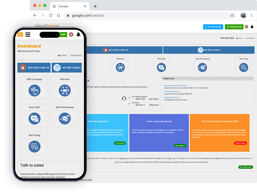 AakashSMS is built to handle high-volume campaigns while maintaining speed, security, and reliability. Whether it’s sending transactional OTPs, promotional offers, or customer alerts, the platform ensures messages are delivered on time, every time.